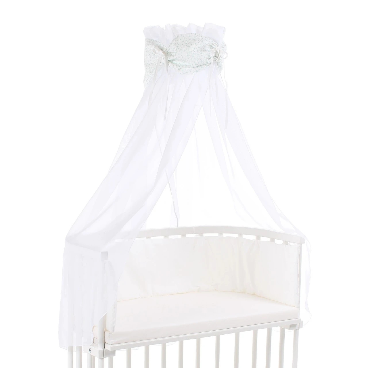 Der luftige Himmel macht aus Ihrem babybay® eine himmlische Wohlfühloase. Dieser Himmel ist nicht nur optisch ein wahrer Eyecatcher, sondern gibt auch Geborgenheit und schützt vor Zugluft sowie zu viel Lichteinfall. Der Himmelstoff sowie die dekorative Schleife sind aus 100% nachhaltiger Bio-Baumwolle gefertigt. Der atmungsaktive Himmelstoff sorgt für optimale Luftzirkulation – nicht zu viel, nicht zu wenig. Mit der dekorativen Schleife passend zum Muster des Nestchens wird er zu einem echten Blickfang. Der transparent-weiße Himmelstoff lässt sich bis 30°C, die dekorative Himmelschleife bis 40°C waschen.