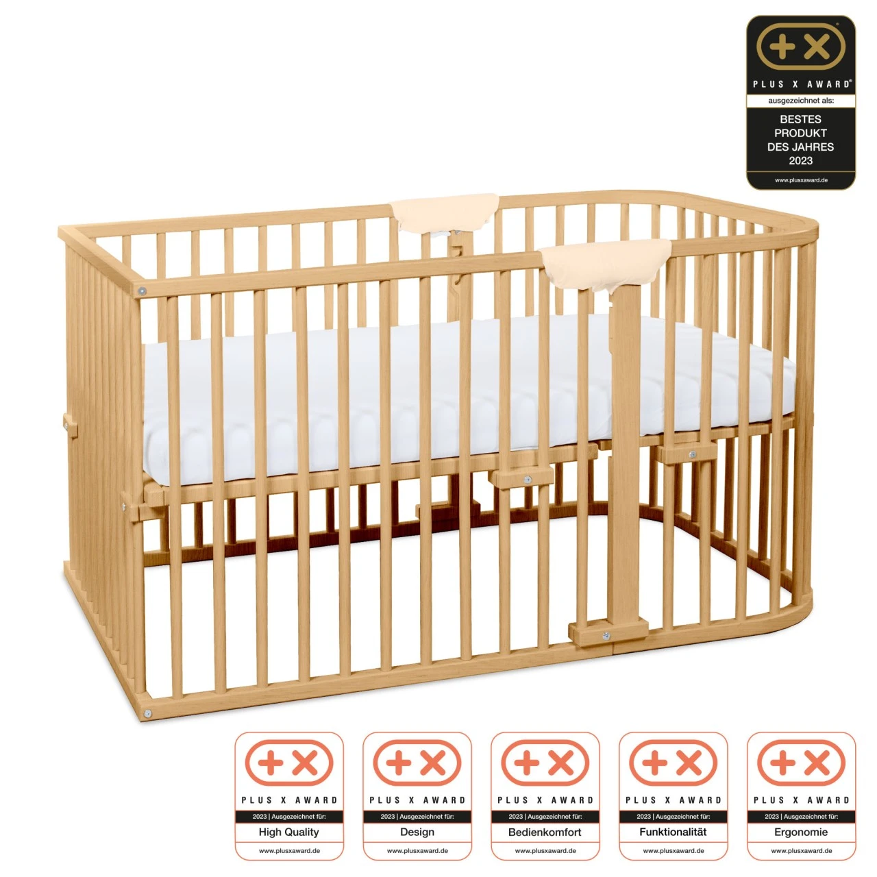 Der babybay® Kinderbett-Umbausatz ist nach der strengen DIN EN 716-1 für Kinderbetten geprüft und in verschiedenen Lackierungen passend zu Ihrem Beistellbett erhältlich. Alle Lacke sind schadstoff- und lösungsmittelfrei sowie speichelfest und sind nach DIN EN 71 Teil 3 geprüft.