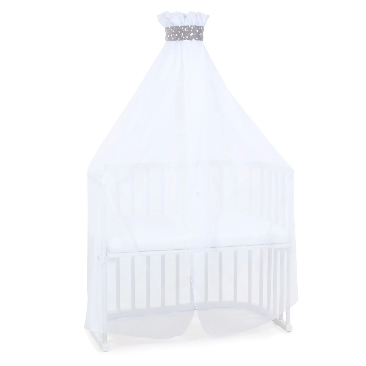 Babybay Moskitoschutz Und Himmel Piqué Mit Band Passend Für Alle Modelle Bis 96 Cm Länge, Taupe Sterne Weiß