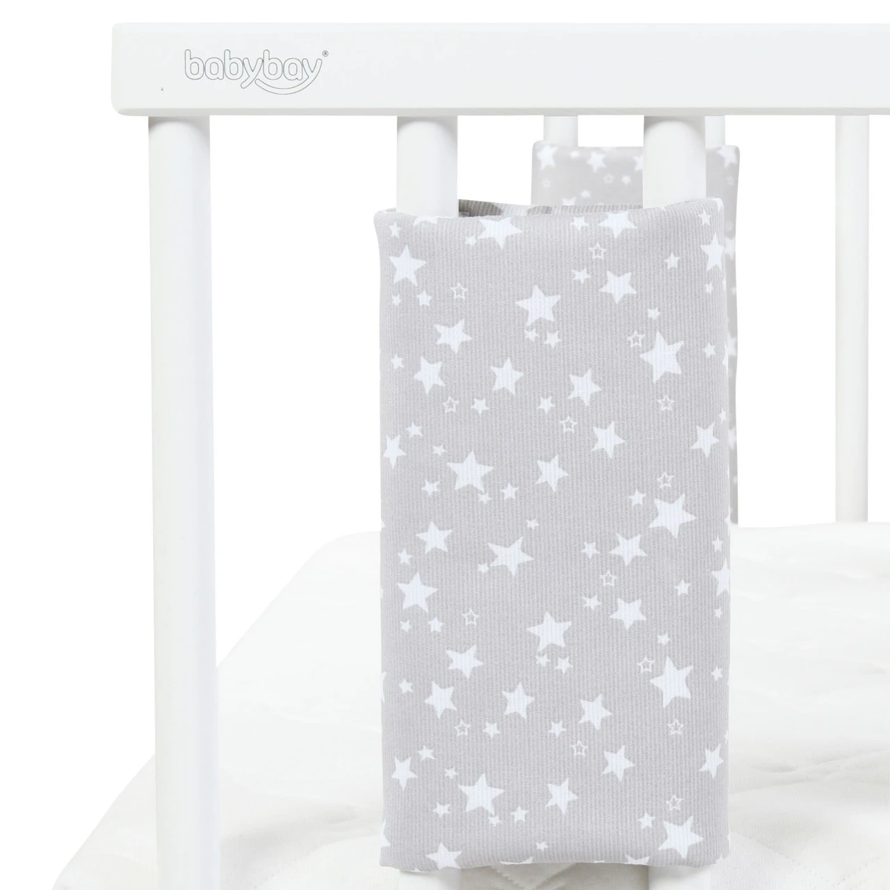 Babybay Nestchen Ultrafresh Piqué Passend Für Modell Maxi, Boxspring, Comfort, Midi Und Comfort Plus, Perlgrau Sterne Weiß