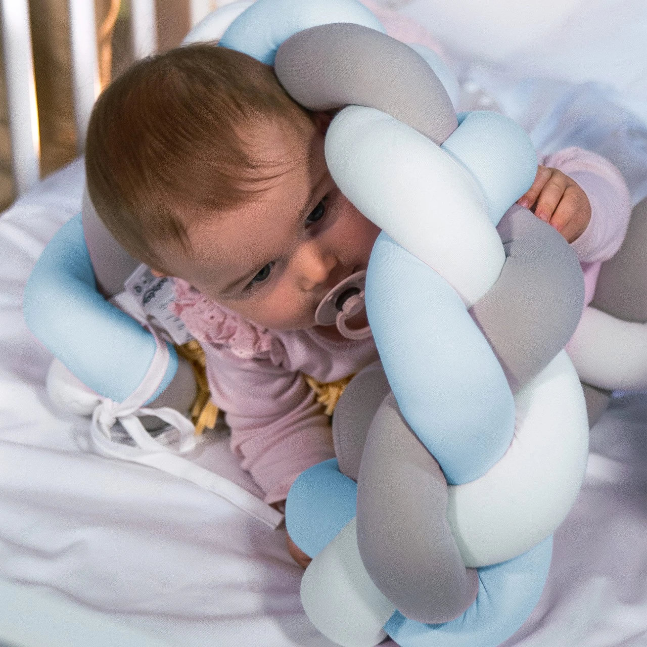 Die wunderbar weiche Nestchenschlange als idealer Begleiter in der Nacht und am Tag – Mit liebevoller Handarbeit werden die drei kleinen Nestchenschlangen zu einem wunderschönen Gesamtbild geflochten. Die Nestchenschlange bietet zuverlässigen Schutz vor Zugluft und sorgt somit für eine ruhige Schlafatmosphäre.