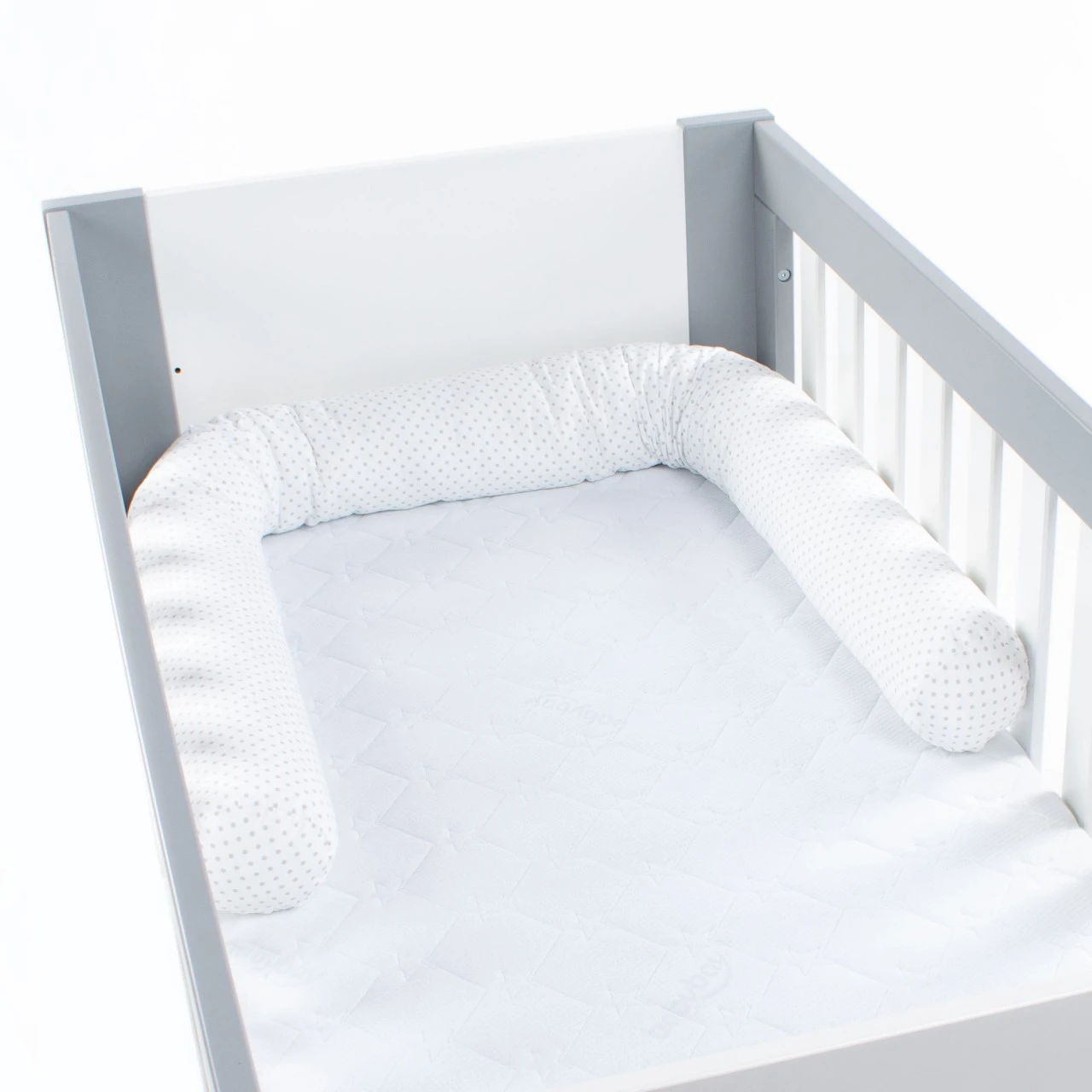 Babybay Nestchenschlange Piqué Passend Für Kinderbetten, Weiß Punkte Perlgrau