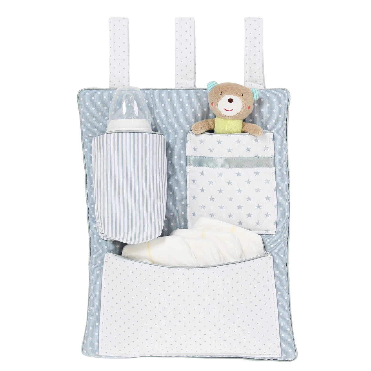 Mit dem praktischen babybay® Utensilo sind Schnuller, Flasche, Windel, Spielzeug und Schmusetuch immer in greifbarer Nähe. Die drei Klettverschlüsse ermöglichen ein einfaches Anbringen und Entfernen. Somit passt das babybay® Utensilo an alle babybay®-Modelle, sowie an alle gängigen Kindergitterbetten. Durch das schöne Design und die hochwertige Verarbeitung wird es zu einem absoluten Eyecatcher. Auch bei größeren Kindern sorgt das Utensilo für mehr Ordnung im Kinderzimmer. Schadstoffgeprüft und ausgezeichnet mit dem Zertifikat „Textiles Vertrauen“ nach Ökotex-Standard 100 Klasse 1 für Babys (12.0.03346).